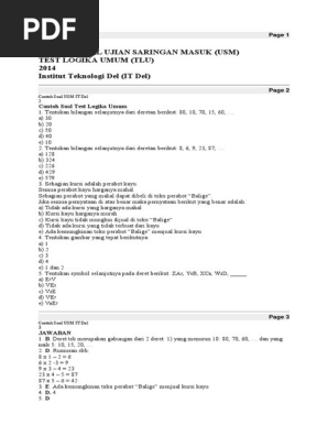 Contoh Soal USM IT Del 2 Contoh Soal Test Logika Umum 1. Silahkan didownload dan selamat belajar. Dalam tes masuk sma smk tahun pelajaran 2016 2017 ada beberapa mata pelajaran yang akan diujikan pada penjurusan peminatan nanti yaitu matematika bhs indonesia b.