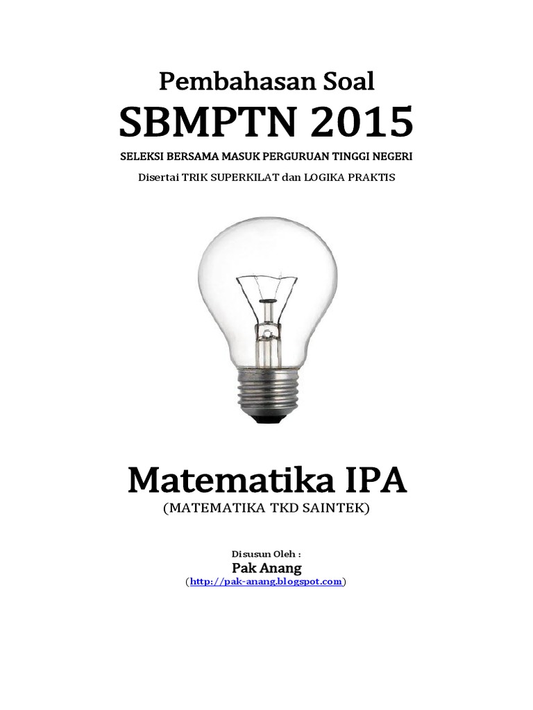 Pembahasan soal tkd saintek sbmptn 2016 matematika ipa trik superkilat nah mulai saat ini blog berbagi dan belajar akan mencoba mengulas hal hal yang berkaitan dengan sbmptn seleksi bersama masuk perguruan tinggi. Kemarin sudah saya bagikan pembahasan Matematika Dasar SIMAK UI untuk nomor 1 sd 10 di sini dan di siniNah sekarang saya bagikan pembahasan untuk soal No 11 sd. Pembahasan Soal UN Matematika SMA 2016 sampai 2010 Program IPA IPS Bahasa Selamat datang pengunjung yang budiman kali ini saya akan membagikan untuk anda e-book SIAP UN 2017 yang berisi pembahasan soal un matematika SMA Program IPA IPS dan Bahasa selama 7 tahun mulai dari tahun 2016 sampai tahun 2010 2016 2015 2014 2013 2012 2011 dan.