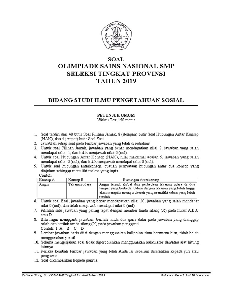 Soal Osn Smp Tingkat Provinsi Tahun 2019 Www Tomatalikuang Com Pdf